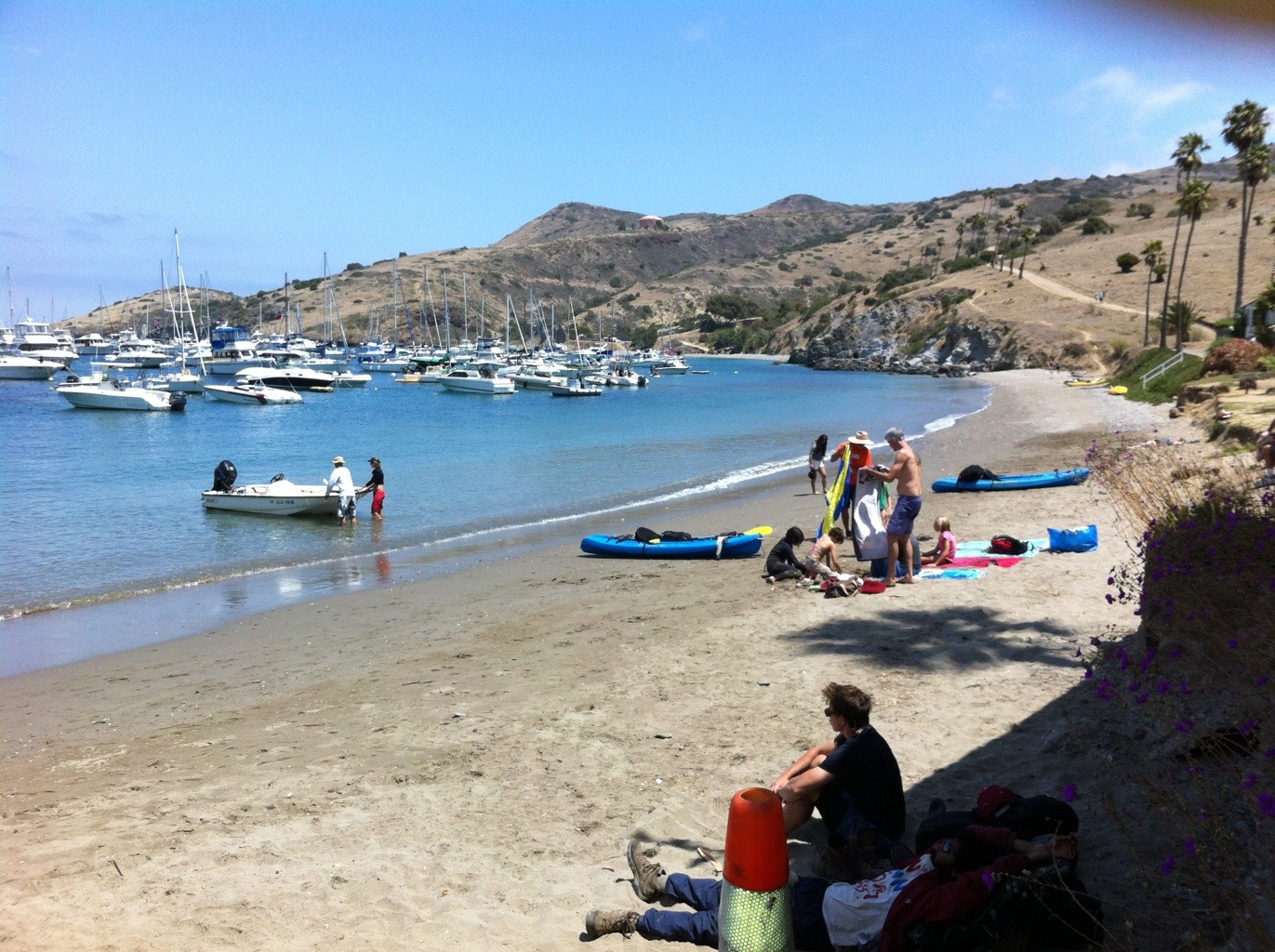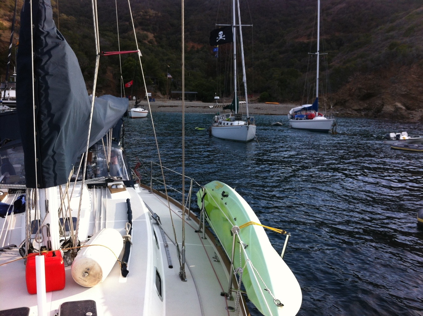 Posted: August 4, 2012 Filed under: Catalina Island, 2012 Leave a commentWe got in about 2:45 pm and got the anchors down without too much fuss. We pumped up the small dingy and gave Christian a quick tour of the shoreside facilities, as they are. I have figured out that without wifi, I cannot easily transfer pictures from the iPhone to the iPad. So I need to load the WordPress software on the iPhone as well so as to upload pictures.