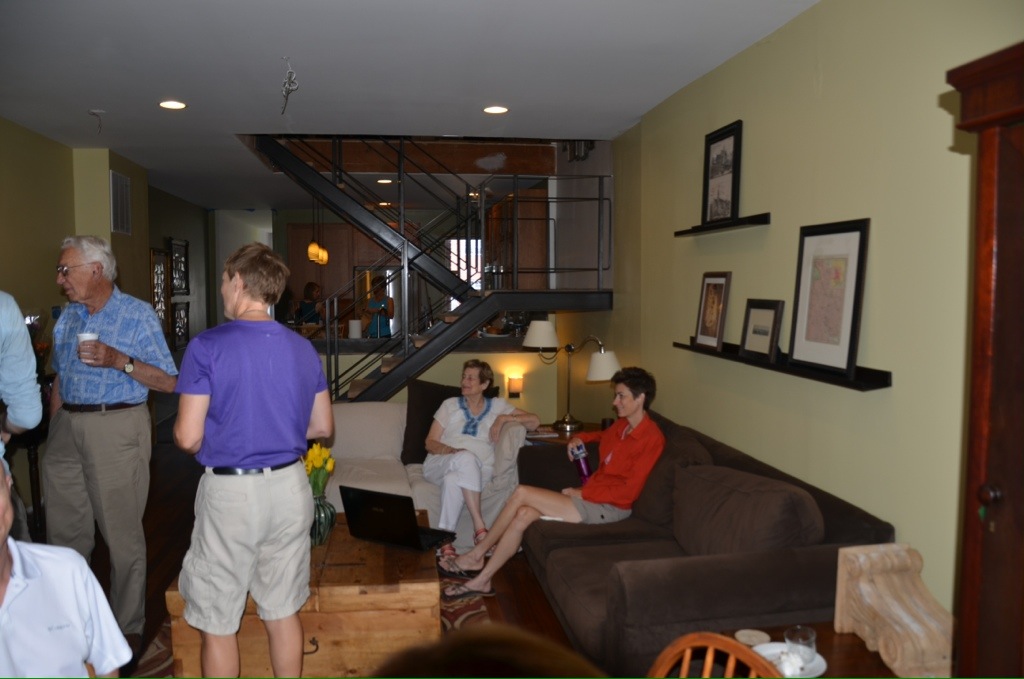 The open house started at 4:00 and we were busy cutting fruit, making caprese, putting out cheese, and all of the party food until the guests arrived. We met a lot of the neighbors who had likewise moved into the neighborhood. It was an interesting group of mostly highly educated people who worked in the Baltimore and Washington DC areas. The family across the alley had three young children, the oldest of which is going to the Quaker high school that Katie is teaching at, starting in the fall.