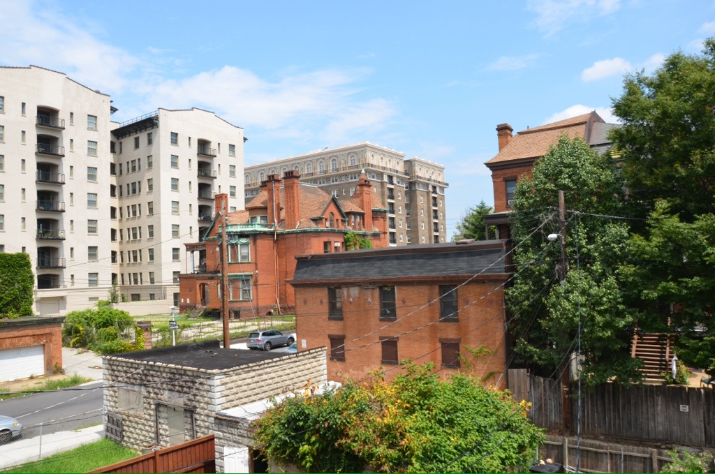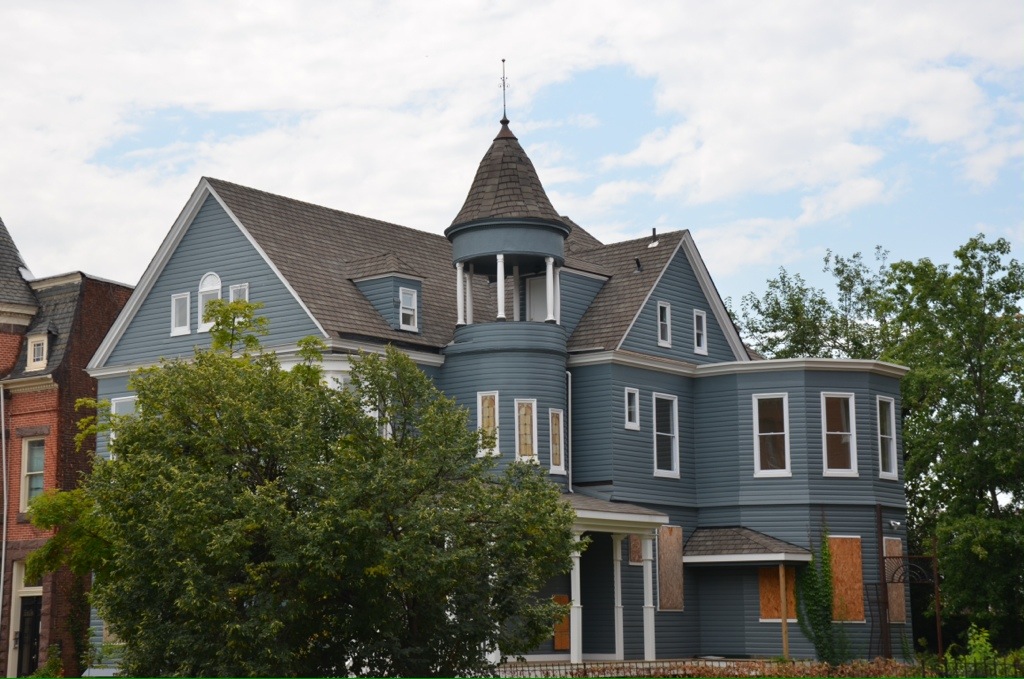 After breakfast, we walked the few blocks to Katie’ s new house. The neighborhood is a real mix of houses in bad shape, refurbished places and vacant lots. There are also a sprinkling of old mansions scattered around. Over its 110 year history, the neighborhoods have had there ups and downs. A couple of high rise apartment buildings, mostly having low income housing, are added to the mix.